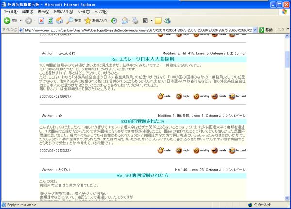 Crew Netの 掲示板には、過去の情報も含め膨大な投稿が蓄積されています☆