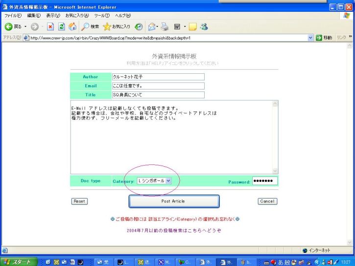 B.エアライン別掲示板にする方法 (カテゴリを選択することによって、エアライン別専用掲示板にすることができます) 上に戻る |